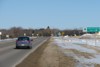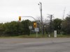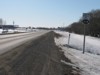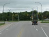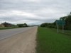 Westbound view showing the sign for Lower Fort Garry National Historic Site. ![]() Photograph taken in April 2009. |