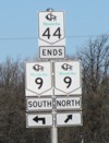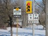 Westbound view approaching the junction of PTH 9 showing a closeup of the markers. ![]() Photograph taken in April 2009. |