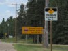 Westbound view showing the first westbound marker for PTH 44. At left is the parking and entrance for the South Whiteshell Trail, a rough, hilly trail for mountain biking. ![]() Photograph taken in July 2012. |