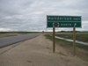 Westbound view approaching the western junction of PR 204 showing the ceremonial La Vérendrye Trail marker. ![]() Photograph taken in May 2011. |