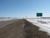 Eastbound view approaching the eastern junction of PR 204. Ahead is the northernmost bridge that crosses the Red River Floodway. ![]() Photograph taken in April 2009. |