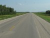 Southbound view approaching Road 132N. In the distance is the Manitoba escarpment along the eastern edge of Riding Mountain National Park. The escarpment is visible along PTH 5 for the entire stretch between Dauphin and Neepawa. ![]() Photograph taken in July 2010. |