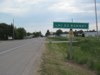 Eastbound view on Minnewawa Street showing the sign indicating entry into Lac du Bonnet, or, as the sign says, “LAC DU BONNET”. ![]() Photograph taken in July 2012. |
