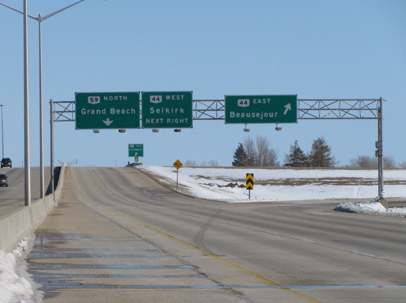 Multiplexes: PR 210 follows PTH 59 for 2 km near Île des Chênes; PTH 12 follows PTH 59 for 19 km north of Brokenhead up to the turnoff for Grand Beach.