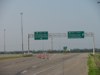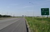 Southbound view approaching the exit for PTH 100 west. ![]() Photograph taken in August 2009. |