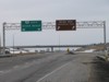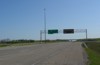 Northbound view showing the overhead signage at the exit to Birds Hill Provincial Park. ![]() Photograph taken in May 2007. |
