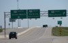 Northbound view north of the exit to Birds Hill Provincial Park. ![]() Photograph taken in May 2009. |