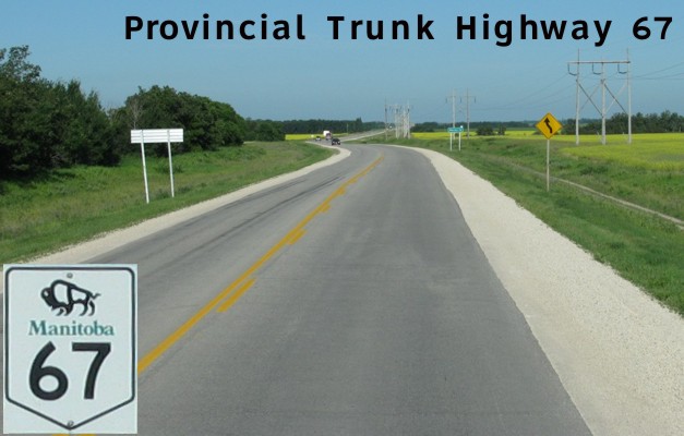 PTH 67 originally connected PTH 6 to PTH 7 through Stonewall and was extended along the former PR 223 to PTH 9 after 1982. Click here to show the route.