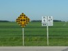 Westbound view approaching the junction of PTH 6. Ahead is the crossing of a CN rail line used by the Prairie Dog Central Railway, a popular tourist attraction that takes passengers from Winnipeg to Grosse Isle and nearby Warren on summer weekends. ![]() Photograph taken in July 2011. |