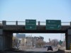 Southbound view showing the overhead signage at the exit for PTH 100 east. ![]() Photograph taken in April 2013. |