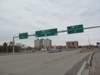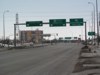 Southbound view showing the overhead signage for the University of Manitoba and Manitoba Taxpayers Stadium. ![]() Photograph taken in July 2013. |