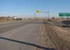 Southbound view past the junction of PR 321. The Winnipeg skyline is faintly visible in the background. ![]() Photograph taken in March 2009. |