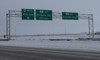 Northbound view showing the overhead signage at the junction of PTH 101. ![]() Photograph taken in January 2009. |