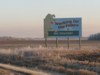 Northbound view approaching Road 84N showing a sign for Manitoba Pork featuring a yellow pig. ![]() Photograph taken in October 2011. |