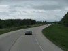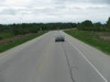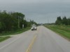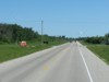 Northbound view approaching a sign giving the distance to the New Iceland Heritage Museum. ![]() Photograph taken in July 2009. |