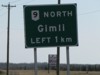Northbound view of the sign showing 59 km to Gimli. ![]() Photograph taken in May 2009. |