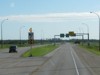 Westbound view showing the sign giving the distances to Winnipeg Beach and Gimli. ![]() Photograph taken in July 2009. |