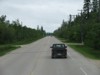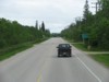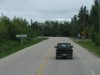 Northbound view showing the sign giving the distances to Gimli and Hnausa. ![]() Photograph taken in June 2010. |