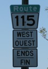 Westbound view on Dugald Road showing the pair newly installed markers indicating westbound Route 115 and the end of PTH 15. ![]() Photograph taken in June 2012. |