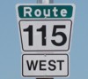 Westbound view on Dugald Road showing a closeup of the pair newly installed markers indicating westbound Route 115 and the end of PTH 15. ![]() Photograph taken in June 2012. |