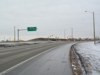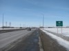 Westbound view at the Pembina Highway exit. When Bishop Grandin Boulevard was first constructed, it ended at Pembina Highway and all traffic was routed along this exit to a traffic light. This intersection became a major bottleneck and traffic was often backed up well east of the bridge during rush hour. ![]() Photograph taken in March 2009. |