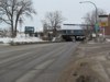 Northbound view on Osborne Street at Mulvey Avenue. Atop the railway underpass is the Osborne terminal for Winnipeg's so-called “Rapid Transit,” a multi-million dollar boondoggle that has done virtually nothing to improve the transit system. ![]() Photograph taken in March 2013. |
