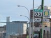 Westbound view approaching McGee Street showing the markers for Route 85 and the Yellowhead Highway. ![]() Photograph taken in March 2011. |