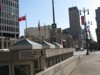 A look at the plaque on the sidewalk at the corner of Portage Avenue and Main Stret commemorating the beginning of Portage Avenue. ![]() Photograph taken in April 2010. |
