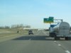 Northbound view showing the reassurance marker past Exit 135. At right is a sign for Burnett Dairy Cheese in Grantsburg, WI, an obvious indicator that I-35 runs close to America's Dairyland. ![]() Photograph taken in April 2013. |