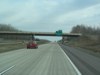 Northbound view showing the sign giving the mileage to Moose Lake, MN 33 and Duluth. ![]() Photograph taken in April 2013. |