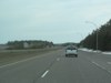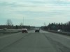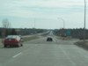 Northbound view passing under Jay Cooke Road showing the sign giving the mileage to CSAH 61, Midway Road and Duluth. ![]() Photograph taken in April 2013. |