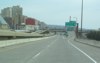 Northbound view at 5th Avenue West on the Exit 256B off-ramp. To the right is the DECC and the AMSOIL Arena and ahead is Lake Avenue, which provides access to the waterfront area. ![]() Photograph taken in April 2013. |