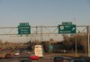 Southbound view near Exit 16A. Ahead is the overhead signage for Exit 13. ![]() Photograph taken in January 2010. |