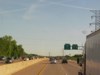 Northbound view approaching Stone Road showing the sign giving the distances to upcoming exits. ![]() Photograph taken in May 2012. |