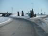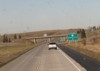 Westbound view approaching Exit 54. Ahead is the crossing over the Otter Tail River. ![]() Photograph taken in November 2009. |