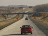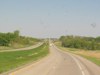 Eastbound view approaching CSAH 82. Off in the distance is a billboard for Jamestown, ND, a community more than 100 miles in the opposite direction. ![]() Photograph taken in November 2009. |