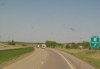 Eastbound view at Mile 66. Off in the distance is the advance signage for Exit 67 - CSAH 35/Dalton. ![]() Photograph taken in November 2009. |
