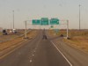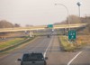 Eastbound view at Exits 167 A & B. This exit leads to a separate lane that runs parallel to I-94 where access to MN 15 is controlled. In the westbound direction, this exit is a more traditional cloverleaf. ![]() Photograph taken in November 2009. |