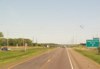 Westbound view past Exit 178 showing the sign giving the distances to Opportunity Drive, St. Cloud and Moorhead. ![]() Photograph taken in May 2012. |