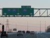 Eastbound view showing the overhead signage for Exit 216. ![]() Photograph taken in January 2010. |