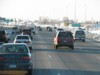 Westbound view merging on to I-94 from I-494. At right is the traffic coming from I-94/I-694. ![]() Photograph taken in November 2009. |