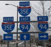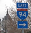 Sign for east I-94 on John Ireland Boulevard. ![]() Photograph taken in December 2008. |