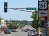 Eastbound view on Seventh Street at Margaret Street showing the signage indicating that US 61 traffic will turn left ahead. ![]() Photograph taken in July 2014. |