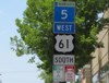 Eastbound view on Seventh Street showing the advance signage for the junction of US 61. ![]() Photograph taken in July 2014. |