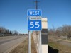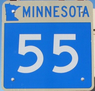 Eastbound view on Hiawatha Avenue at 50th Street facing the 50th Street LRT station. The light rail route that connects downtown Minneapolis to the Mall of America takes its number from MN 55. ![]() Photograph taken in November 2009. |