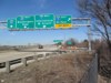 Eastbound view showing advance signage for the exit to MN 5 east. ![]() Photograph taken in April 2013. |