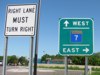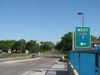 Northbound view on Wooddale Avenue showing the signage for the turnoff to westbound MN 7. ![]() Photograph taken in May 2012. |