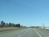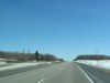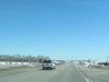 Eastbound view past Mile 29 showing the first of many snowmobile advisory signs on this stretch of US 10. ![]() Photograph taken in April 2013. |