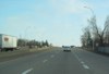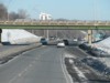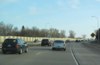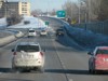 Northbound view passing the exit for Bren and Londonderry Roads. ![]() Photograph taken in January 2010. |