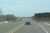 Westbound view showing the end of the divided highway. ![]() Photograph taken in April 2013. |